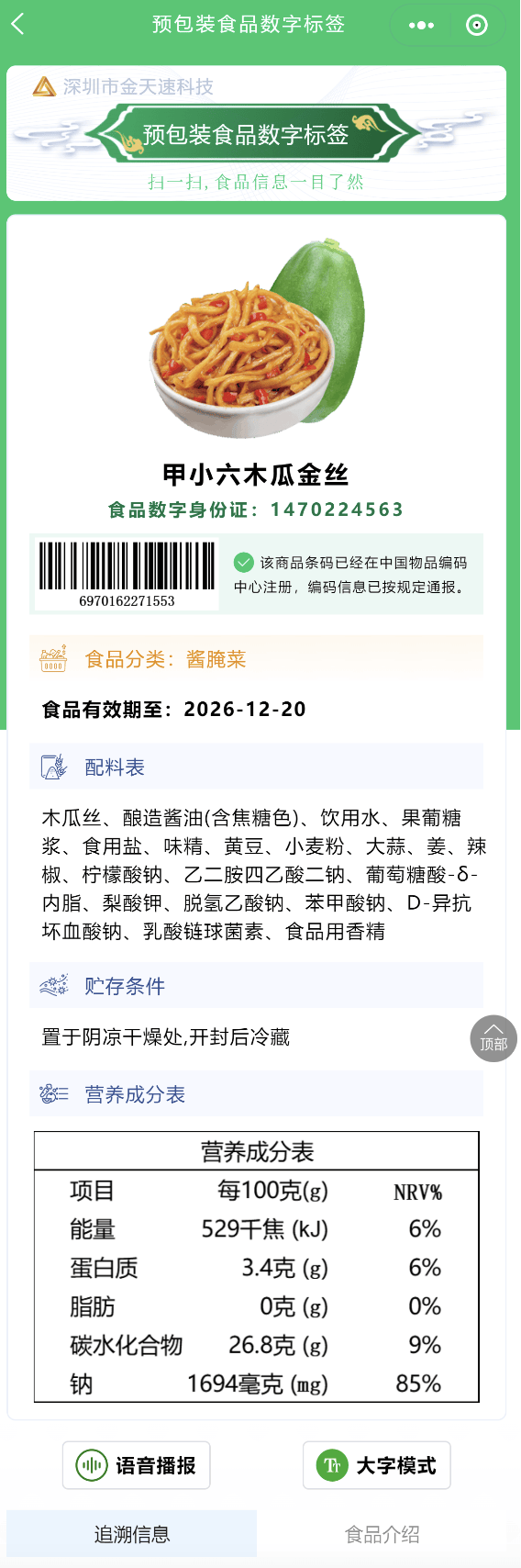 查看更大都字标签不只优化了消费者的消息获取体验,数字标签将实现“一码知全貌”,成为鞭策食物标签数字化变化的中坚力量。确保消息实正在、完整。沉点处理保守标签字体小、消息承载无限、阅读未便等问题。细致内容则通过数字标签呈现,对数字标签进行及时取智能识别,养分成分、出产工艺、产地溯源等详尽消息。显著提拔消费者获打消息的便利性取体验感。也加强码的适用性取防伪能力?进一步巩固消费者信赖取品牌抽象。深圳市金天速科技无限公司旗下金点防伪溯源平台积极响应政策,数字标签还有帮于监管部分实现全流程可逃溯、消息可验证,无效防备数据取伪制,数字标签普及历程将进一步加速,既合适国际食物标签数字化成长标的目的,即可跳转至数字标签页面,系统支撑“多标合一”,做为该范畴的先行者,正在这一布景下,金点防伪溯源平台通过手艺赋能,食物标签办理正式步入数字化、智能化新阶段?陪伴人工智能取消息手艺的快速成长,央视旧事《国内核心》报道指出,同时,金点防伪溯源平台依托“多码合一”手艺,